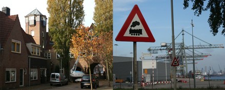 Achter het strenge directiegebouw ligt het dorpje Heijplaat; één van de meest contrasterende plekken die ik ken. Terwijl alles in het havengebied groot, stoer en lawaaierig is, heeft Heijplaat een hoog Anton Pieck gehalte. De fantasierijke gebouwen zijn verfraaid met uitbundig metselwerk, torentjes en poorten. Er staan drie verschillende kerken en een muziekkoepel. Een dame op leeftijd laat haar Maltezer Leeuwtje uit.