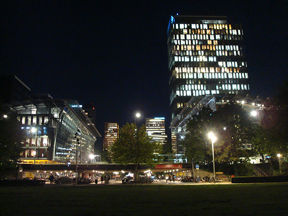 Tussen 1987 en 1997 woonde ik met mijn ouders en broertje in Amsterdam Zuid. Mijn puberkamer op de zolderverdieping van het Berlageblok keek uit over het water, met daarachter de sportvelden van het Olympiaplein. In de jaren ’90 waren de enige lichtjes aan de horizon overvliegende vliegtuigen en het reuzenrad op het Stadionplein tijdens de kermis. Als ik nu mijn ouderlijk huis bezoek en uit het zolderraam kijk, zie ik een serieuze skyline; de Zuidas.