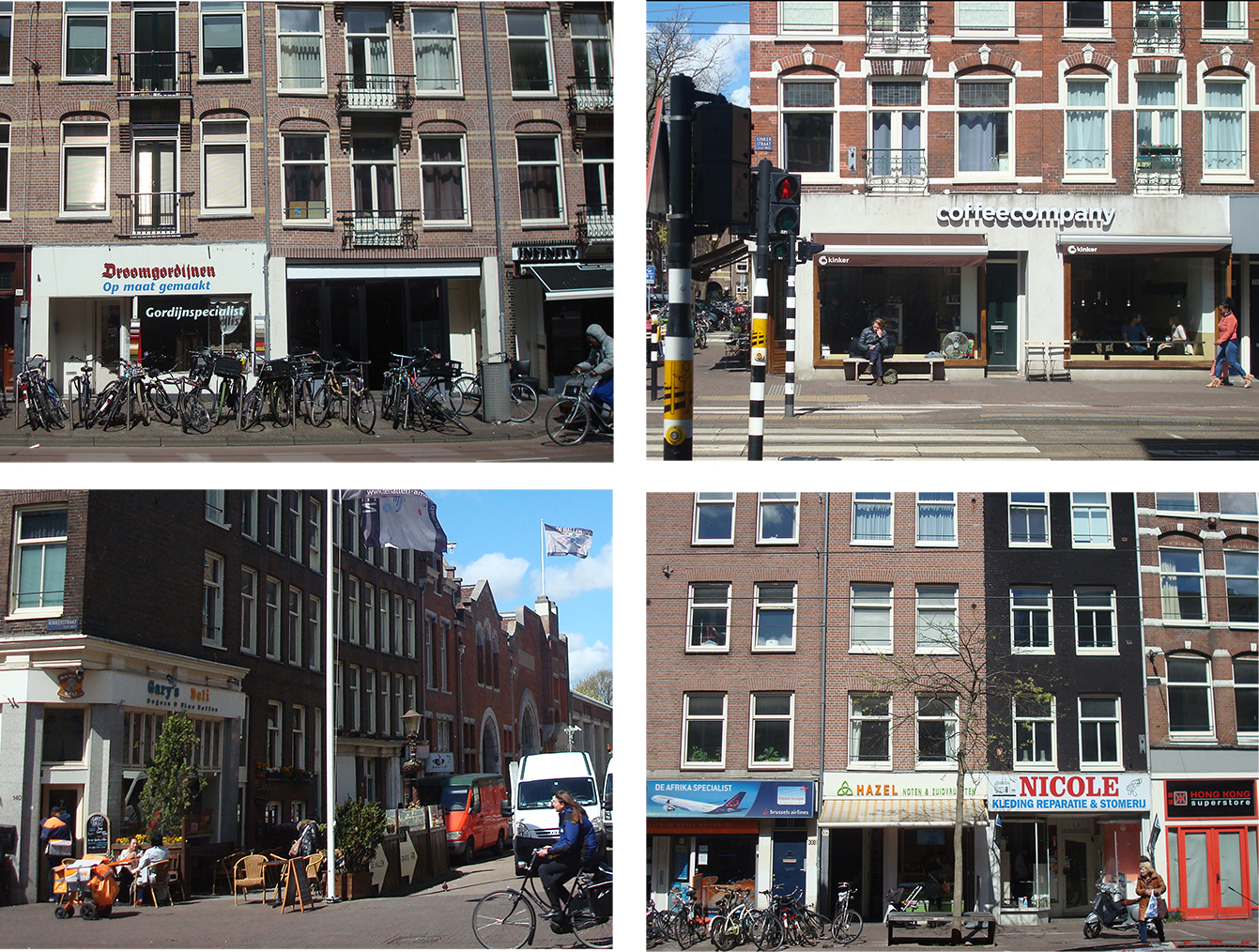 Ze verschijnen als paddenstoelen op de hoeken van de Kinkerstraat: de koffietentjes. Ze voeden zich met de humuslaag die eeuwen van authentieke levendigheid in het straatbeeld heeft achtergelaten. Op dit moment zijn het er vier, vooral geconcentreerd in het oostelijke deel van de straat. Ze zitten allemaal aan de noordkant, vanwege de bezonning, maar ook omdat er aan de zuidkant on-authentieke nieuwbouw staat. De koffietentjes hebben blankhouten interieurs en een behang van lichtvoetige singer songwritermuziek. Buiten staan banken met kleurige kussentjes en wankele bistrotafeltjes, waar net geen laptop op past.